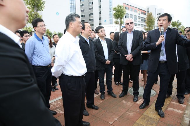 在參觀(guān)的過(guò)程中,中德金屬集團(tuán)董事長(zhǎng)吳克東還向馬省長(zhǎng)介紹了中德金屬生態(tài)城的運(yùn)作模式,并簡(jiǎn)要匯報(bào)了去年中德金屬生態(tài)城建設(shè)中所取得的成績(jī),帶動(dòng)了揭陽(yáng)實(shí)體經(jīng)濟(jì)的發(fā)展,幫助揭陽(yáng)傳統(tǒng)企業(yè)做產(chǎn)品升級(jí)。