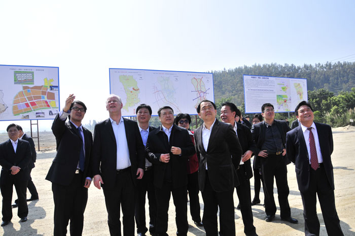 考察團一行首先到達中國南方(揭陽)金屬生態(tài)城現(xiàn)場,市領導陳東,揭東縣領導林炳華為沙爾平先生介紹了金屬城總體的布局,表示金屬城項目建設將按照“一個中心(產業(yè)聚集中心)、兩個基地(生產加工基地、貿易物流基地)、三大平臺(科技創(chuàng)新平臺、電子商務平臺、金融服務平臺)”的定位進行規(guī)劃,建設中國“金屬原材料交易中心、金屬產業(yè)研發(fā)設計中心、金屬制品制造中心、金屬機械制造中心、金屬產品銷售中心、金屬行業(yè)人才技工基地、金屬行業(yè)金融中心”七大板塊。隨后,考察團來到中德產業(yè)大學園區(qū)參觀,考察團先后參觀了大學園區(qū)建設用地,聽取相關領導介紹大學園區(qū)規(guī)劃、布局、生活配套設施和周邊園區(qū)建設規(guī)劃。