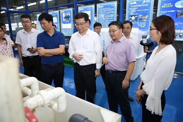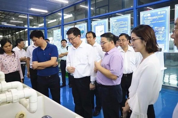 黃副省長一行深入廣東德森環(huán)?萍加邢薰緩S房,考察德森移動(dòng)式智能生活污水處理設(shè)備項(xiàng)目,聽取負(fù)責(zé)人介紹相關(guān)設(shè)備及技術(shù)后,鼓勵(lì)德森環(huán)保加大環(huán)保技術(shù)科研創(chuàng)新,為中國環(huán)保事業(yè)做一份貢獻(xiàn)!