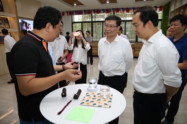 在廣東大宇環(huán)保高新技術(shù)有限公司做環(huán)?萍紕(chuàng)新產(chǎn)業(yè)這一調(diào)研工作時(shí),黃副省長聽取工作人員講解水凈化筆的創(chuàng)新技術(shù),觀看水凈化筆演示殺菌消毒時(shí)指出:要讓大宇水凈化筆充分發(fā)揮它的作用,讓更多人知道這款產(chǎn)品不僅僅作用在凈水殺菌上。