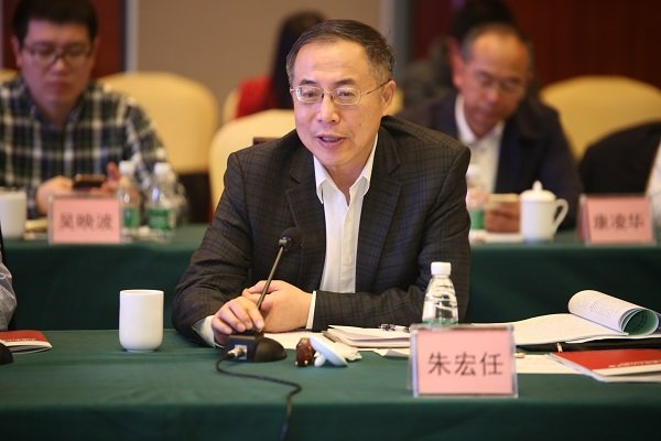 ▲中國企業(yè)家聯(lián)合會常務(wù)副會長兼理事長,工業(yè)和信息化部前黨組成員、總工程師朱宏任發(fā)言