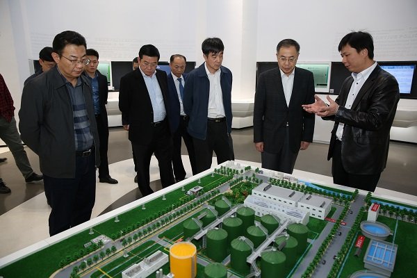 ▲中德金屬集團(tuán)董事長吳克東向工信部領(lǐng)導(dǎo)一行介紹入園項目建設(shè)情況