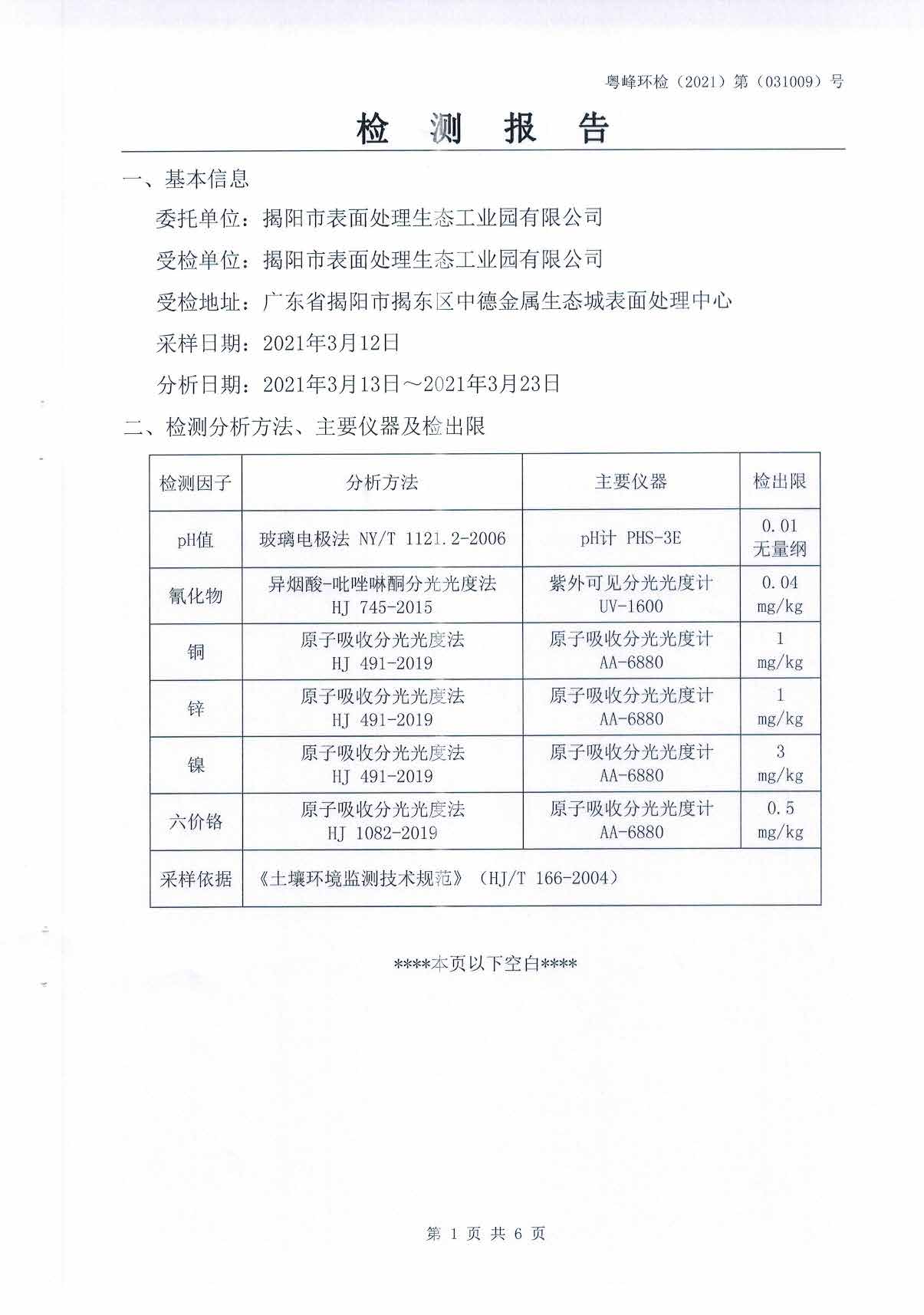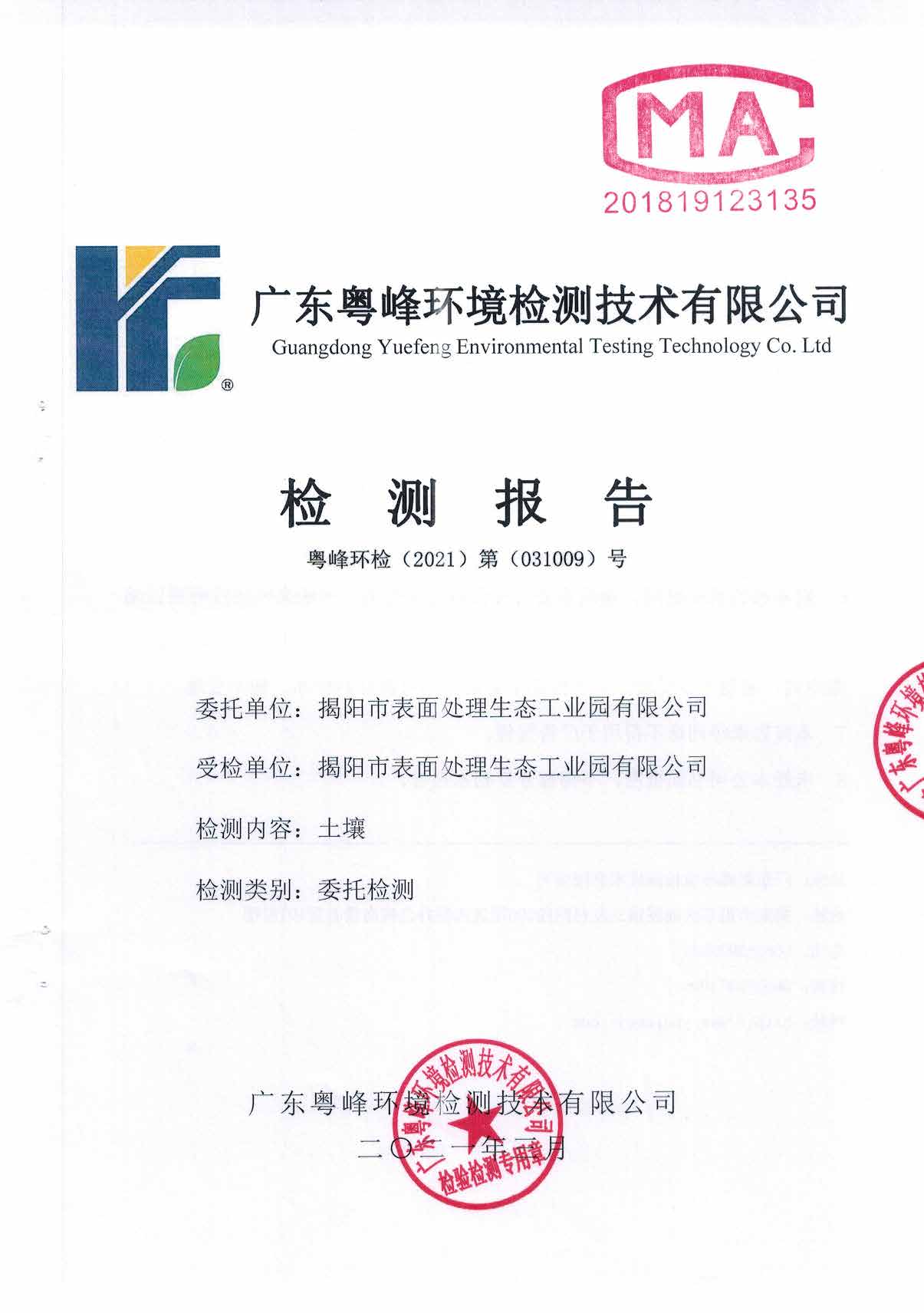 中德金屬生態(tài)城表面處理中心2021年3月份土壤檢測報告公示
