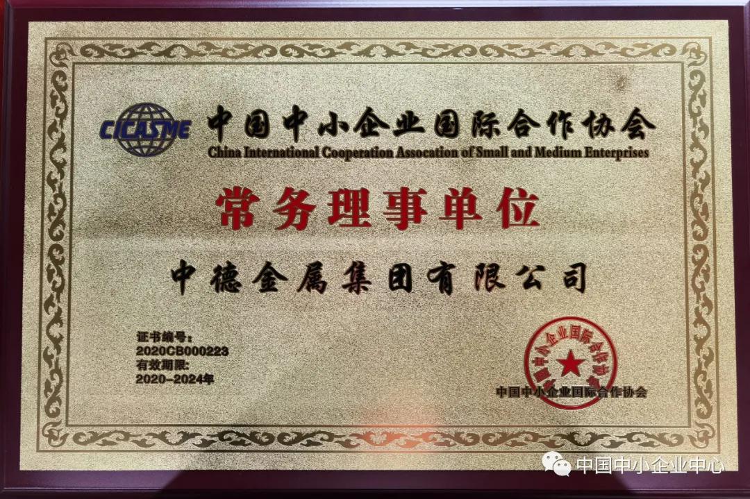 征程萬里風正勁,重任千鈞再揚鞭。中德金屬集團始終不忘初心,大力倡導(dǎo)對外開放合作、資源互聯(lián)互通,持續(xù)提升品牌效應(yīng)和業(yè)務(wù)能力,與國內(nèi)外政商界進行聯(lián)合創(chuàng)新,促進經(jīng)貿(mào)合作。本次入選理事單位充分體現(xiàn)了中國中小企業(yè)國際合作協(xié)會對我司的認可。中德金屬集團將忠實履行常務(wù)理事單位的義務(wù)與責任,加強與中小企業(yè)的緊密交流與溝通,投入更多的國內(nèi)外資源,努力推進中國中小企業(yè)的蓬勃發(fā)展,經(jīng)濟騰飛。