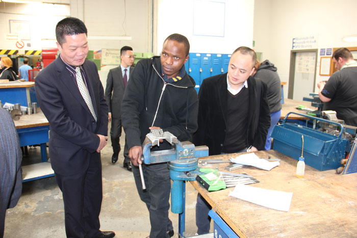 代表團在沙爾平先生的介紹下,深入考察了德國的職業(yè)教育體系,先后參觀了黑森-圖林根大區(qū)工會下屬的職業(yè)技術(shù)學(xué)校海因里希-克萊因爾學(xué)校,實地參觀了德國職業(yè)技術(shù)學(xué)校教學(xué)現(xiàn)場。德國學(xué)生經(jīng)過培訓(xùn)后達(dá)到的高超技藝,給代表團留下了深刻印象,并立即與相關(guān)部門達(dá)成了職業(yè)教育培訓(xùn)合作意向,為揭陽創(chuàng)辦產(chǎn)業(yè)技術(shù)應(yīng)用大學(xué)積累了寶貴的合作資源。