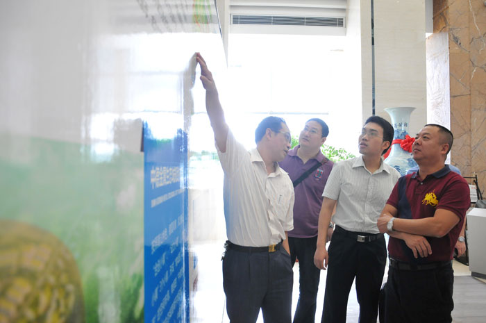 南儲(chǔ)倉儲(chǔ)管理有限公司總裁彭舜章一行參觀生態(tài)城項(xiàng)目展板