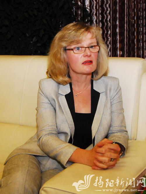 近日,德國聯(lián)邦經(jīng)濟(jì)和技術(shù)部東亞經(jīng)貿(mào)處處長(zhǎng)Gerlind Heckmann女士來揭訪問。她在接受記者采訪時(shí)表示,自己深深為中德金屬生態(tài)城的魅力所折服(見圖。盧澤鴻 攝)。