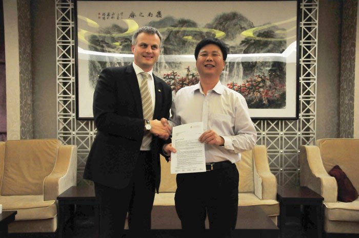 吳克東與貝爾恩德•埃邁爾簽署合作備忘錄后合影