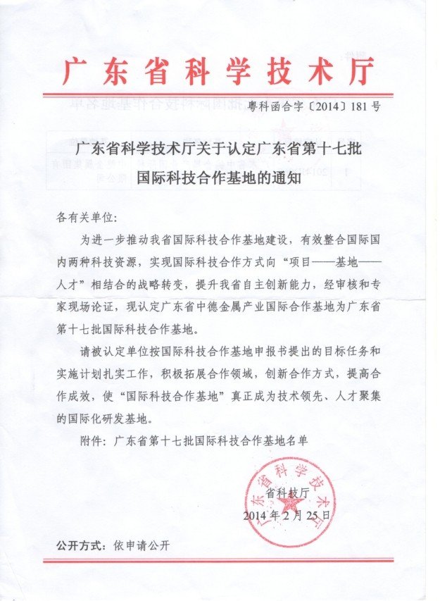 中德金屬產(chǎn)業(yè)國際合作基地入選廣東省第十七批國際科技合作基地