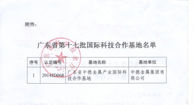 近日,中德金屬產(chǎn)業(yè)國際合作基地被廣東省科學技術(shù)廳認定為廣東省第十七批國際科技合作基地,標志著中德金屬集團有限公司在整合國內(nèi)外科技資源、引進專業(yè)技術(shù)人才、提升自主創(chuàng)新能力等方面獲得省級認可及重點支持,這將進一步加快基地高新企業(yè)集聚,助推中德合作、綠色發(fā)展更上新臺階。