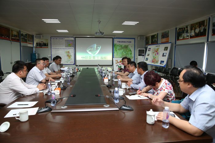 張經(jīng)華一行與李健、中德金屬集團相關(guān)領(lǐng)導(dǎo)在金屬生態(tài)城建設(shè)指揮部座談