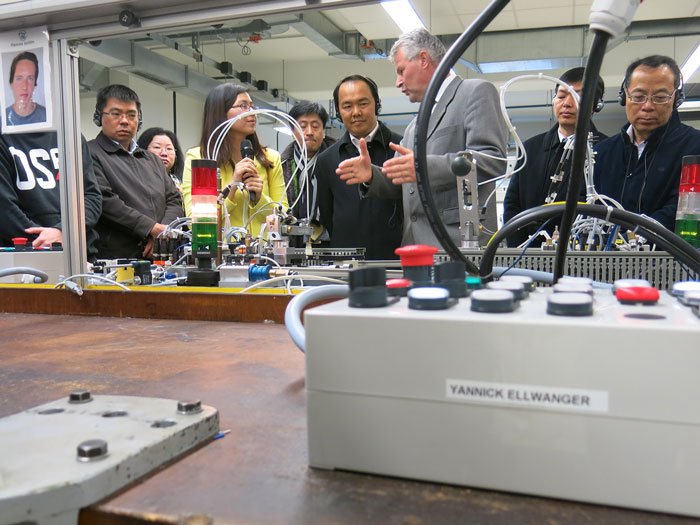 雙元制是源于德國(guó)的一種職業(yè)培訓(xùn)模式,被稱為戰(zhàn)后德國(guó)經(jīng)濟(jì)騰飛的“秘密武器”。 26日上午,代表團(tuán)一行兵分兩路,分別趕赴德國(guó)埃斯林根應(yīng)用科技大學(xué)(Hochschule Esslingen)和Waiblinggen 職業(yè)學(xué)校進(jìn)行考察學(xué)習(xí)。