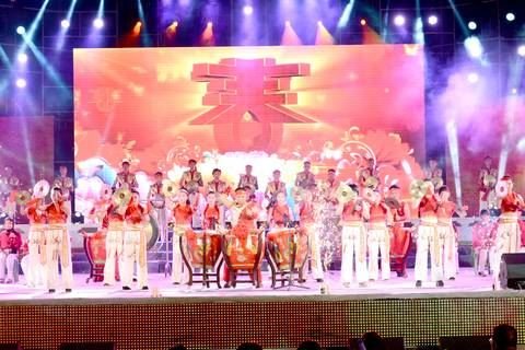 當(dāng)晚7時(shí)30分,晚會(huì)在氣勢(shì)恢宏的潮州大鑼鼓表演《鼓鳴盛世》中拉開序幕,鏗鏘的鼓點(diǎn)和昂揚(yáng)的鑼聲迅速點(diǎn)燃了現(xiàn)場(chǎng)觀眾的熱情。晚會(huì)分為“陽光路 上”和“走向復(fù)興”兩個(gè)篇章,有舞蹈、小品、潮劇、太極扇、男女獨(dú)唱等精彩節(jié)目,讓現(xiàn)場(chǎng)觀眾如癡如醉。在舞蹈表演中,演員們或用婀娜曼妙的舞姿、或用活力 四射的舞步,表達(dá)了對(duì)美好生活的喜悅之情和對(duì)未來生活的信心!叭浒搿薄睹利愋腋P掠駵颉泛团錁飞钞嫳硌荨睹利惖募亦l(xiāng)》等節(jié)目則用群眾喜聞樂見的方式, 生動(dòng)地演繹了中德金屬生態(tài)城落戶玉滘鎮(zhèn)以及當(dāng)?shù)攸h政深入開展黨的群眾路線教育實(shí)踐活動(dòng)、推進(jìn)教育創(chuàng)強(qiáng)等為民眾生活帶來的可喜變化。晚會(huì)上,我市“玉德人 物”李良雄還現(xiàn)場(chǎng)用腳書寫了“男兒當(dāng)自強(qiáng)”五個(gè)大字,激勵(lì)鄉(xiāng)親們勇敢開創(chuàng)美好生活。