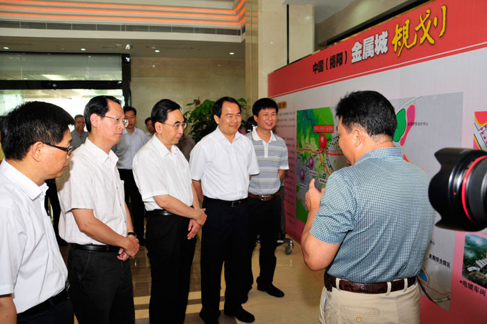 陳東市長(zhǎng)簡(jiǎn)要的介紹了揭陽市近年來金屬產(chǎn)業(yè)發(fā)展和金屬產(chǎn)業(yè)轉(zhuǎn)型升級(jí)的概況,吳克東會(huì)長(zhǎng)詳細(xì)介紹揭陽金屬城建設(shè)、規(guī)劃、開發(fā)的情況,隨后朱小丹省長(zhǎng)觀看了《產(chǎn)業(yè)復(fù)興,輝煌崛起——揭陽金屬產(chǎn)業(yè)20年巡禮》宣傳片,他對(duì)揭陽金屬產(chǎn)業(yè)自主創(chuàng)新模式給予充分肯定,希望揭陽繼續(xù)發(fā)揮金屬產(chǎn)業(yè)集群的優(yōu)勢(shì),不斷提升自主創(chuàng)新,打響自主品牌,培養(yǎng)龍頭企業(yè),為加快產(chǎn)業(yè)轉(zhuǎn)型升級(jí),建設(shè)幸福廣東作出新貢獻(xiàn)。