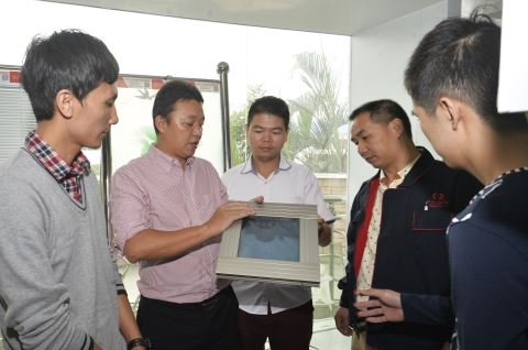 宏光公司技術(shù)人員探討如何在技術(shù)引進(jìn)中提高產(chǎn)品能效。涂英鵬 攝