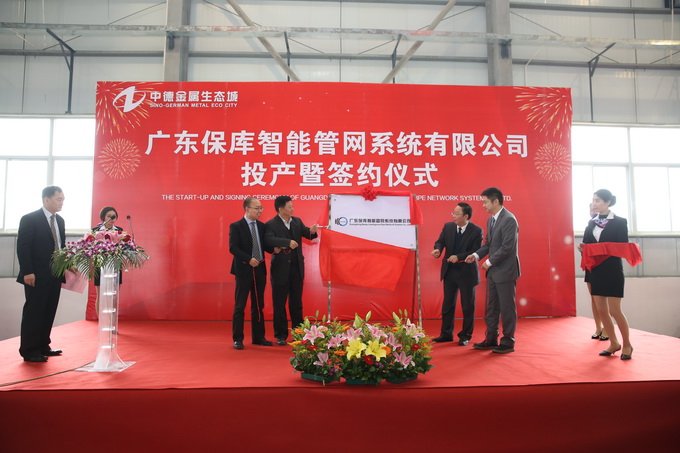 經(jīng)過連續(xù)8個(gè)月的緊張籌建,廣東保庫智能管網(wǎng)系統(tǒng)有限公司首條生產(chǎn)線于21日成功投產(chǎn),成為中德金屬生態(tài)城首家投產(chǎn)企業(yè)。揭陽對(duì)德合作“百人團(tuán)”首獲碩果,標(biāo)志著中德金屬生態(tài)城對(duì)德(歐)合作邁出了具有實(shí)質(zhì)性意義的重要一步。副市長張時(shí)義等市領(lǐng)導(dǎo)及中德金屬集團(tuán)相關(guān)領(lǐng)導(dǎo)參加活動(dòng)。