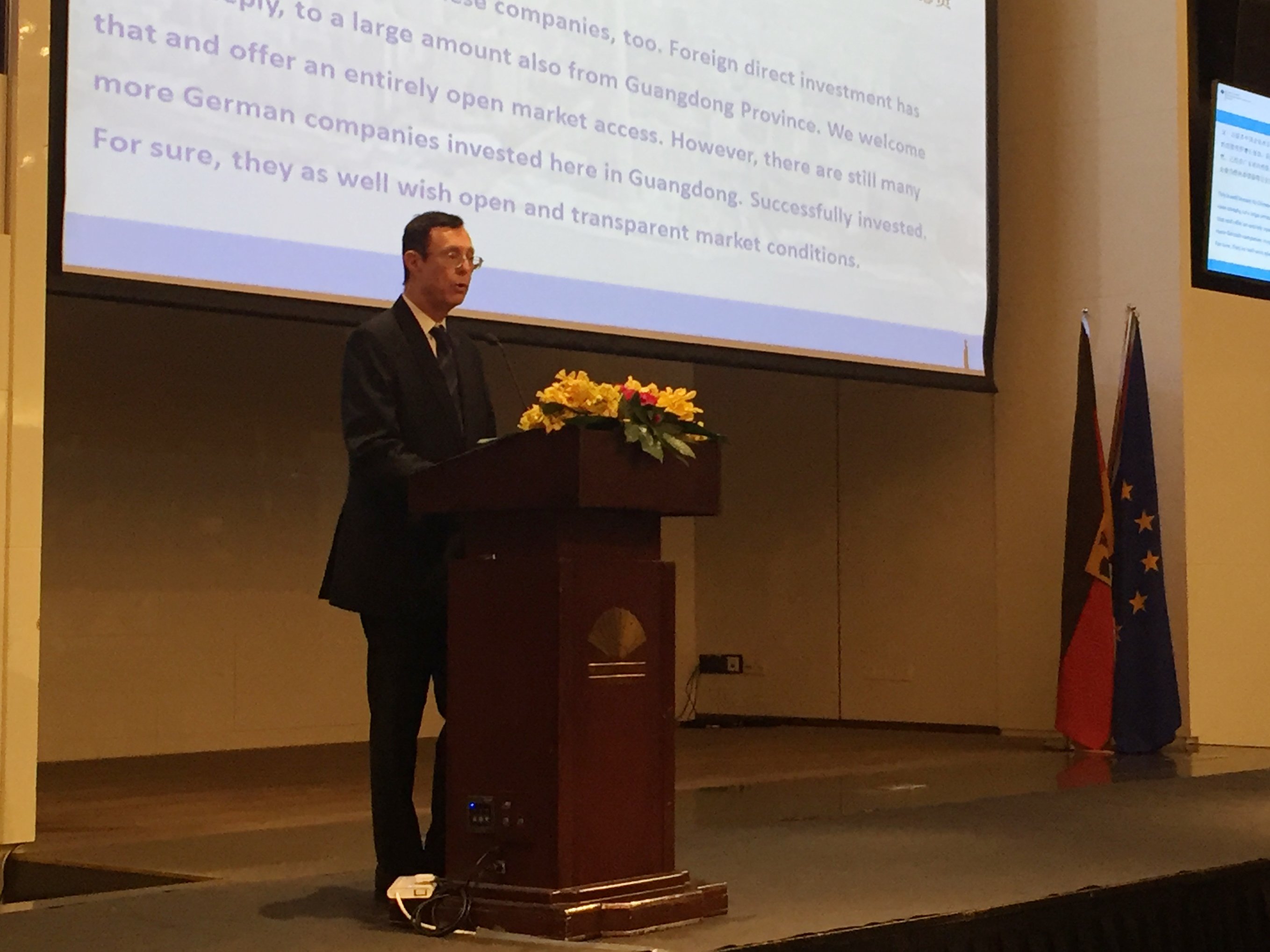 他指出,廣東將積極構建與國際接軌的投資貿(mào)易規(guī)則體系,深入拓展與各國經(jīng)貿(mào)技術交流合作,努力形成全方位、多層次、寬領域、高水平的開放發(fā)展新格局。他表示,廣東愿意同德國一道,以2017年中德建交45周年為新契機,繼續(xù)推動雙方在更寬領域、更高層次上交流與合作。