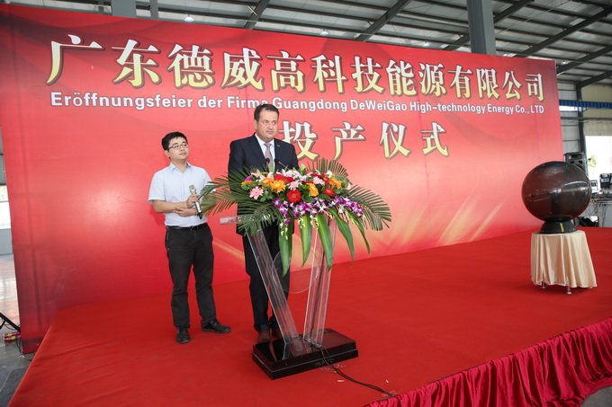 投產(chǎn)儀式上,市政府副秘書長李志堅(jiān)表示,近年來,揭陽深入貫徹“一帶一路”和“創(chuàng)新驅(qū)動”發(fā)展戰(zhàn)略,不斷深化對德合作,全方位支持中德金屬生態(tài)城建設(shè)。如今,園區(qū)建設(shè)全面加快,入園企業(yè)德威高公司的投產(chǎn)便是一個很好的范例。當(dāng)前,國家高度重視并鼓勵資源的循環(huán)利用和環(huán)境保護(hù),資源高效利用的市場十分廣闊。他希望德威高公司要以投產(chǎn)運(yùn)行為起點(diǎn),瞄準(zhǔn)國際一流,依托中德金屬生態(tài)城這一平臺,深化與德國等發(fā)達(dá)國家的技術(shù)合作,把企業(yè)打造成為資源高效開發(fā)利用的先行者。他還強(qiáng)調(diào),各級有關(guān)部門要進(jìn)一步強(qiáng)化服務(wù)意識,為公司創(chuàng)造寬松的發(fā)展環(huán)境,推動更多中德合作項(xiàng)目落地。